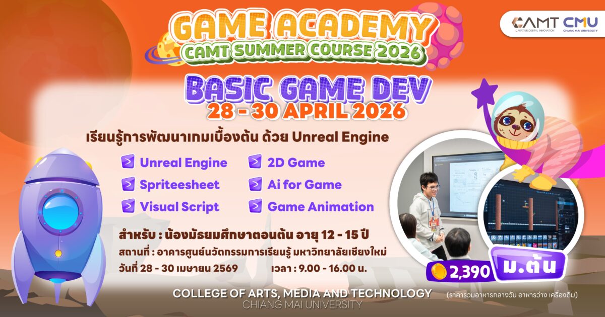 ผู้เรียนจะได้เรียนรู้กระบวนการพัฒนาเกมแบบครบวงจร ภายในระยะเวลา 3 วัน ตั้งแต่พื้นฐานการออกแบบเกม (Game Design) การจัดการกราฟิกและแอนิเมชันด้วยเทคนิค Flipbooks และ Spritesheets การเขียนคำสั่งควบคุมเกมแบบไม่ใช้โค้ดที่ซับซ้อน (Visual Scripting) การสร้างระบบการเคลื่อนที่ของตัวละครและแพลตฟอร์ม ไปจนถึงการประยุกต์ใช้ AI (ปัญญาประดิษฐ์) เข้ามาช่วยในการพัฒนาเกม ปิดท้ายด้วยกิจกรรม Workshop ลงมือสร้างโปรเจกต์เกมจริง และนำเสนอผลงาน (Game Presentation) เพื่อฝึกทักษะการสื่อสารและความคิดสร้างสรรค์ โดยมีวิทยากรผู้เชี่ยวชาญคอยดูแลอย่างใกล้ชิด